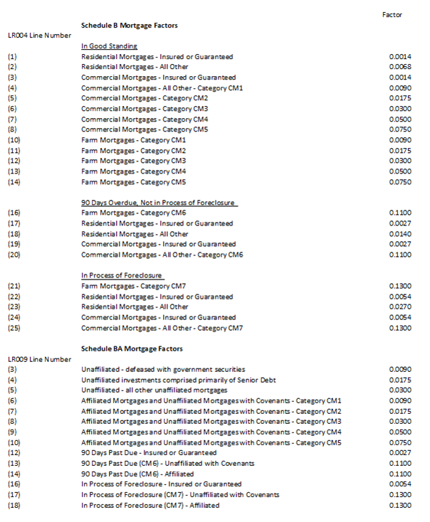 Revisions to CM6 and CM7 Mortgage RBC Factors and Formula on LR004 Schedule B Mortgages and LR009 Schedule BA Mortgages